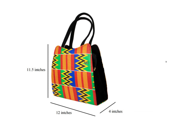 Crafted from high-quality, locally sourced cloth, this handbag boasts a unique blend of colors and patterns inspired by the diverse landscapes and traditional art of the continent. The fabric reflects the skillful artistry of African artisans, ensuring that each piece tells a story of tradition and creativity.