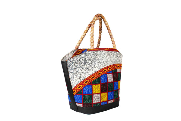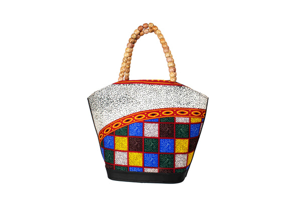 Crafted from high-quality, locally sourced cloth, this handbag boasts a unique blend of colors and patterns inspired by the diverse landscapes and traditional art of the continent. The fabric reflects the skillful artistry of African artisans, ensuring that each piece tells a story of tradition and creativity.