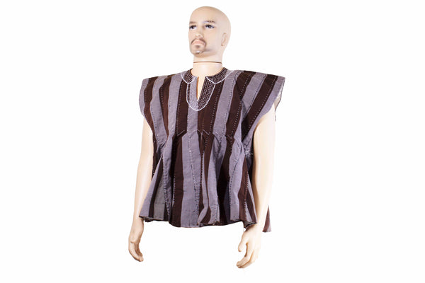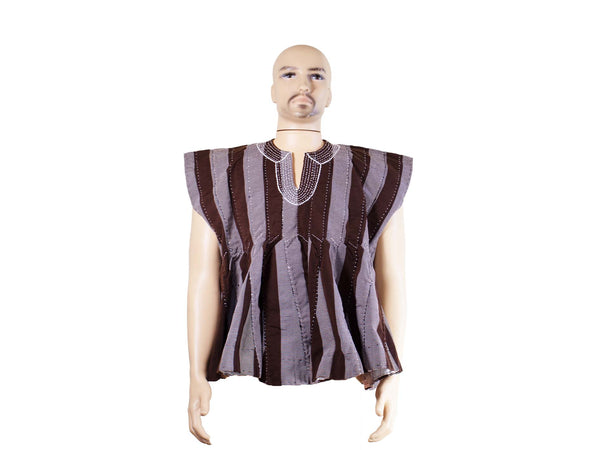 The intricate detailing and expert craftsmanship showcase the artistry of traditional African and MEN tailoring. The flowing silhouette and relaxed fit not only provide ease of movement but also exude an air of sophistication. The Fugu Top is adorned with authentic embellishments, inspired by age-old motifs and designs, adding a touch of authenticity to your ensemble.